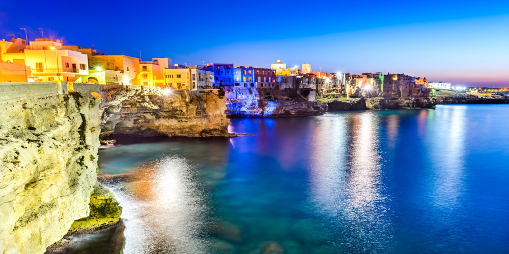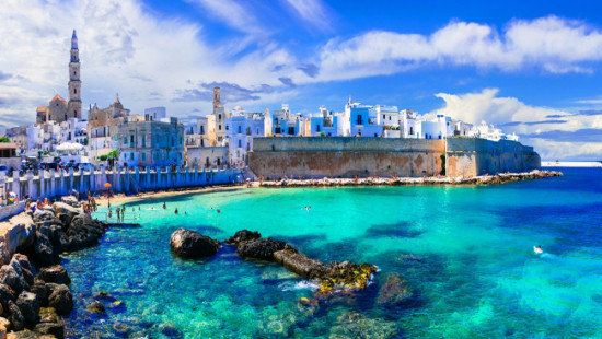 20/09/26 – 10º DIA (DOM.) BARI / POLIGNANO A MARE / MONOPOLI / BARI (90 km): Após o café da manhã, saída para passeio de dia inteiro pela costa do Mar Adriático. A primeira parada será em Polignano a Mare, uma das cidades mais emblemáticas da Puglia, famosa por seus penhascos dramáticos, enseadas de águas cristalinas e pelo centro histórico suspenso sobre o mar. Navegação incluída para apreciar as cavernas marinhas e a paisagem costeira a partir do mar. Tempo livre para almoço (não incluído). À tarde, continuação até Monopoli, cidade portuária charmosa, com centro histórico bem preservado, porto antigo e atmosfera tranquila. Ao final das visitas, retorno a Bari e tempo livre. Hospedagem.