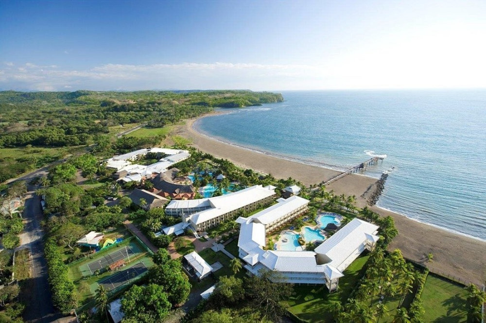 Resort situado à beira-mar no Pacífico Central da Costa Rica, cercado por amplos jardins tropicais e com acesso direto à praia. Sistema all inclusive com restaurantes, bares, piscinas e atividades recreativas, ideal para relaxar nos últimos dias da viagem
