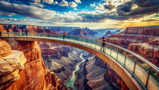 DIA 7 – 11/10/26 (DOMINGO): LAS VEGAS EXCURSÃO AO GRAND CANYON WEST: Após café da manhã, saída do hotel às 8h00 para o Grand Canyon West, com chegada estimada às 11h00. O trajeto totaliza cerca de 390 km ida e volta, com previsão de 8 horas de duração. Inclui ingresso general admission e visita à passarela Skywalk das 11h30 às 13h00. O almoço é livre e sugerido no Eagle Point Café ou lanches disponíveis na área. Passeio de helicóptero opcional não incluso está disponível. Retorno ao hotel em Las Vegas previsto para as 17h00. À noite, tempo livre para aproveitar as atrações locais. Hospedagem no hotel reservado para o grupo.