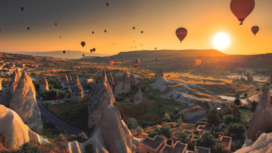 16/10/26 (6º Dia, SEX) CAPADÓCIA - LENDA DAS FADAS / OPCIONAL SOBREVOO DE BALÃO / NOITE TURCA: Café da manhã no hotel e em momento oportuno saída do hotel para visitar a região da Capadócia e seus arredores com belezas naturais e históricas. A área é composta por diferentes cidades e vilas, entre elas Göreme, Ürgüp, Uçhisar e Avanos. Sua paisagem é formada por vales coloridos, dobraduras e interessantes formações, conhecidas como Chaminés de Fada. A explicação para seu relevo acidentado é de origem vulcânica, combinada da erupção de alguns vulcões e a ação erosiva de rios que modelaram a paisagem local. Visita de uma loja de joias e pedra típica da Capadócia e a uma fábrica de tapetes e/ou cerâmica para aprender sobre a fabricação desses produtos. Jantar no hotel e hospedagem.